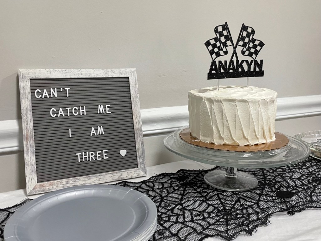 my middle child is three! not going to lie, I switched his theme mid-planning after realizing a racing theme was more on brand for my growing toddler.